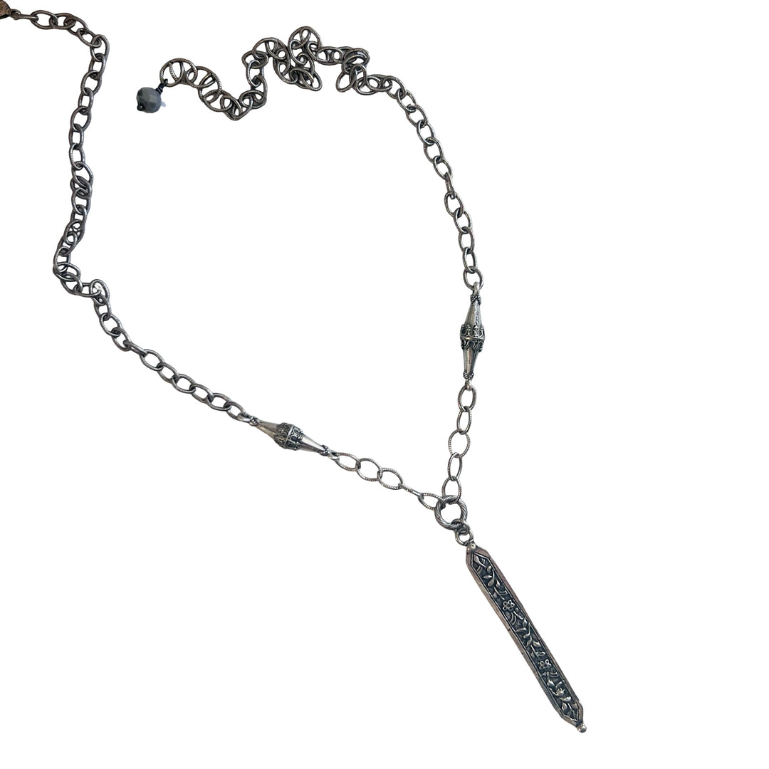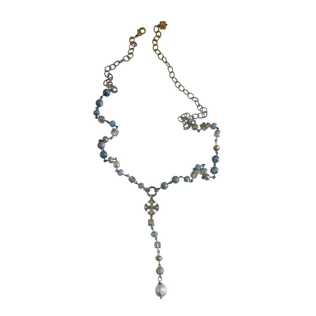 Aged Silver or Matte Gold Templar Cross Pearl Chain Necklace